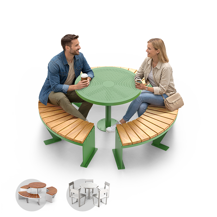 Tarjoamme sinulle kaupunkikalusteita, joita ilman kaupunkien viheralueet eivät voi tulla toimeen. Valikoimaamme kuuluvat myös piknik-pöydät, joissa yksityiskohtiin ja toiminnallisuuteen kiinnittämämme huomion ansiosta yhdistyvät käytännöllisen välineen ja koristeen ominaisuudet. Parhaan laatuisen puun, hiiliteräksen ja ruostumattoman teräksen avulla olemme voineet antaa pöydillemme ominaisuuksia, joiden ansiosta ne erottuvat kilpailijoista ja sopivat samalla täydellisesti nykyaikaiseen kaupunkiarkkitehtuuriin.