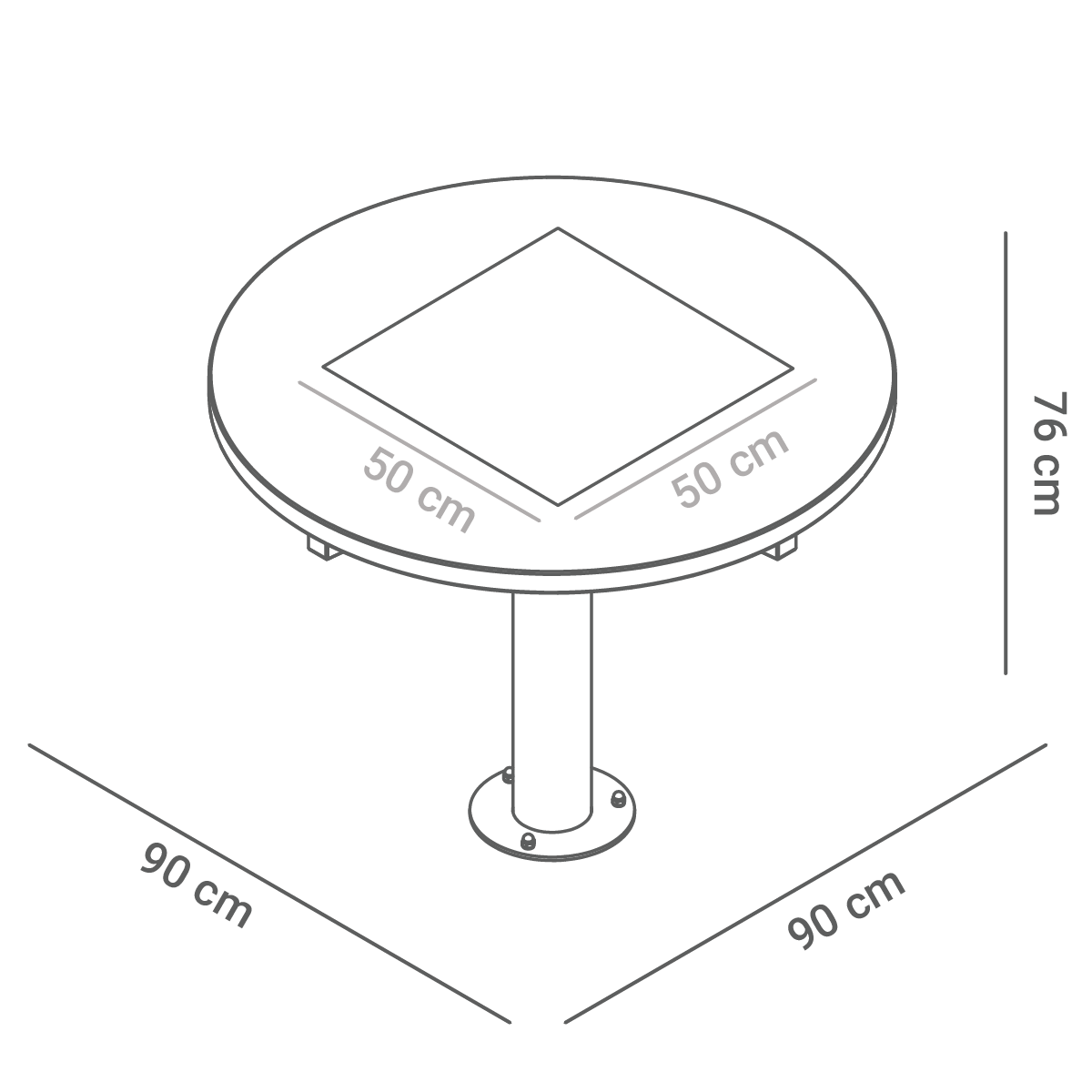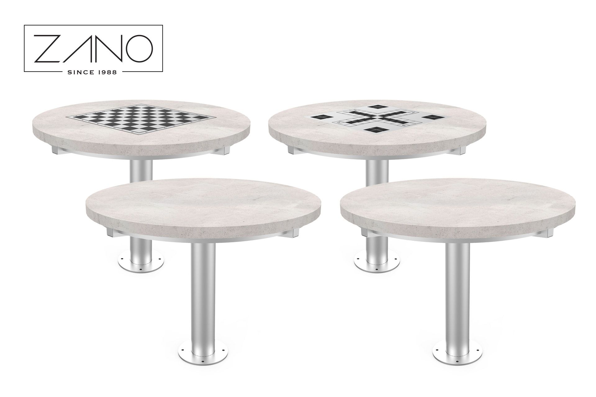 Amicus-pöytä. Siinä on betonipinta, jolle voit asettaa valitsemasi shakki- tai kiinalaisen pelin. Pelilauta sijoitetaan UV-tulostamalla betonipinnalle tai syövyttämällä teräslevyyn, joka sijoitetaan sopivaan syvennykseen betonipintaan. Pöytälevy on tuettu teräsrakenteeseen. Voit valita pöydän hiiliteräksestä, pulverimaalattuna RAL-värillä tai ruostumattomasta teräksestä.