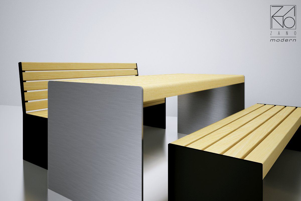 Simple modern line -pöytä on tyylillisesti sukua Simple-sarjan penkeille, jotka löytyvät Bonarka-ostoskeskuksesta Krakovassa. Pöydän rakenne perustuu teräslevyihin. Pöytälevy on valmistettu puulankuista.