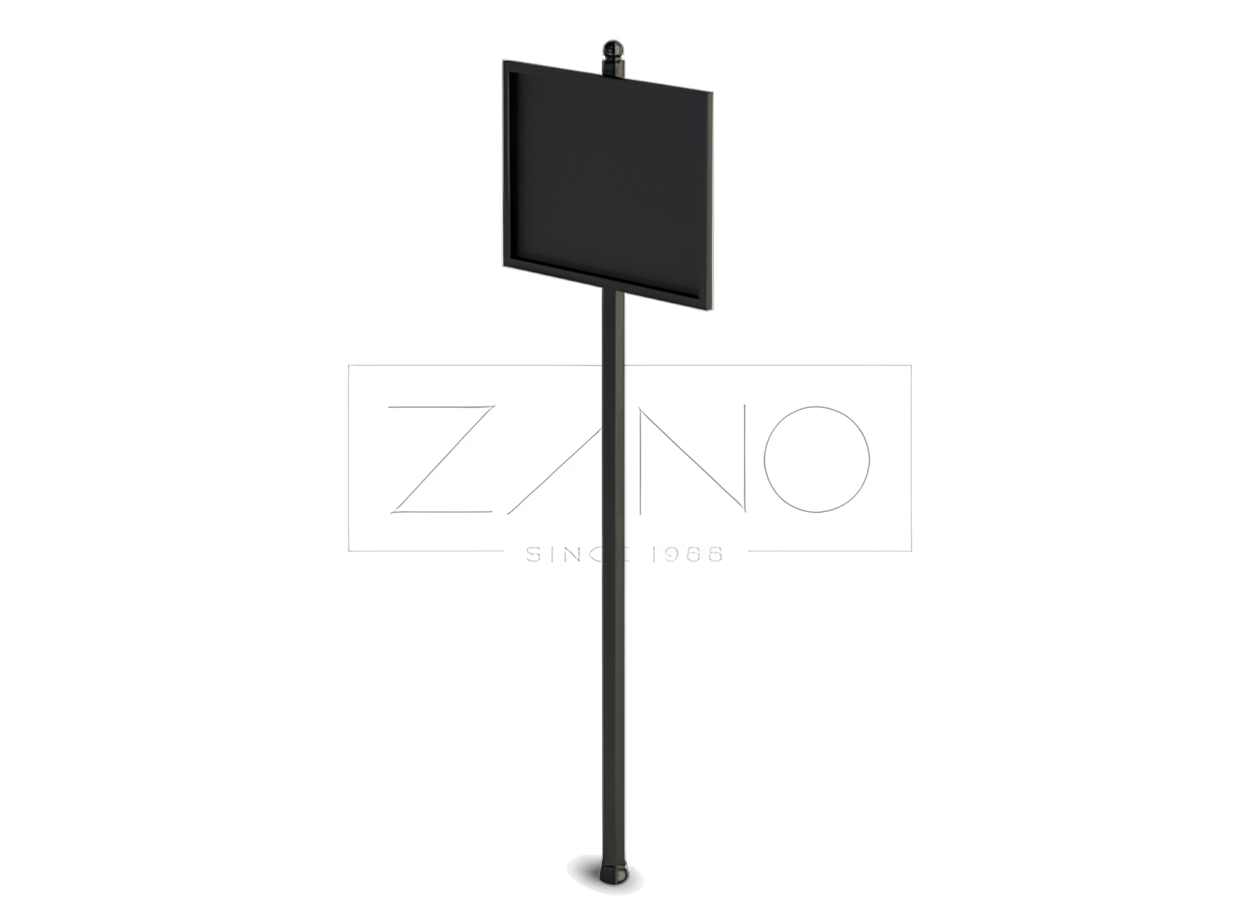 Malli City 08.031 - tolppa mustaa terästä, levy sinkittyä levyä 50 x 40. Palvelee erilaisia tehtäviä, esim. informatiivinen, opettavainen.